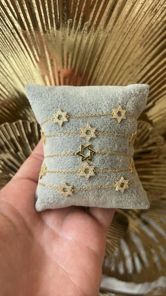 Three Pave Star of David Bracelet